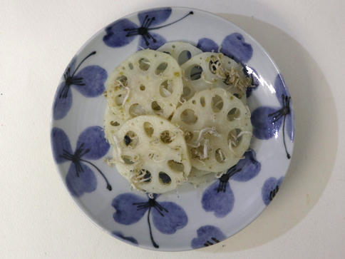 器は、日下華子さんの「染付けクローバー5寸皿(¥2,640)」です。