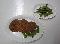 メンチカツは久しぶりのコンニチハです。とにかくお野菜、お野菜です。