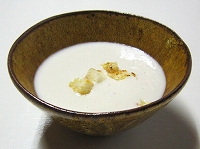 ガーリック風味のクルトンをつまみ食いして叱られました。里芋のスープが出始めると季節がchangeです。