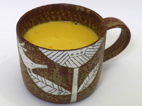 器は、北川タケシさんの「ハナとトリのマグ/金茶/3(¥3,888)」です。